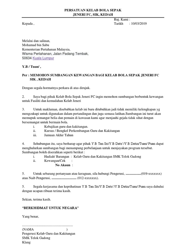 Permohonan bantuan kewangan surat mohon sumbangan yb.